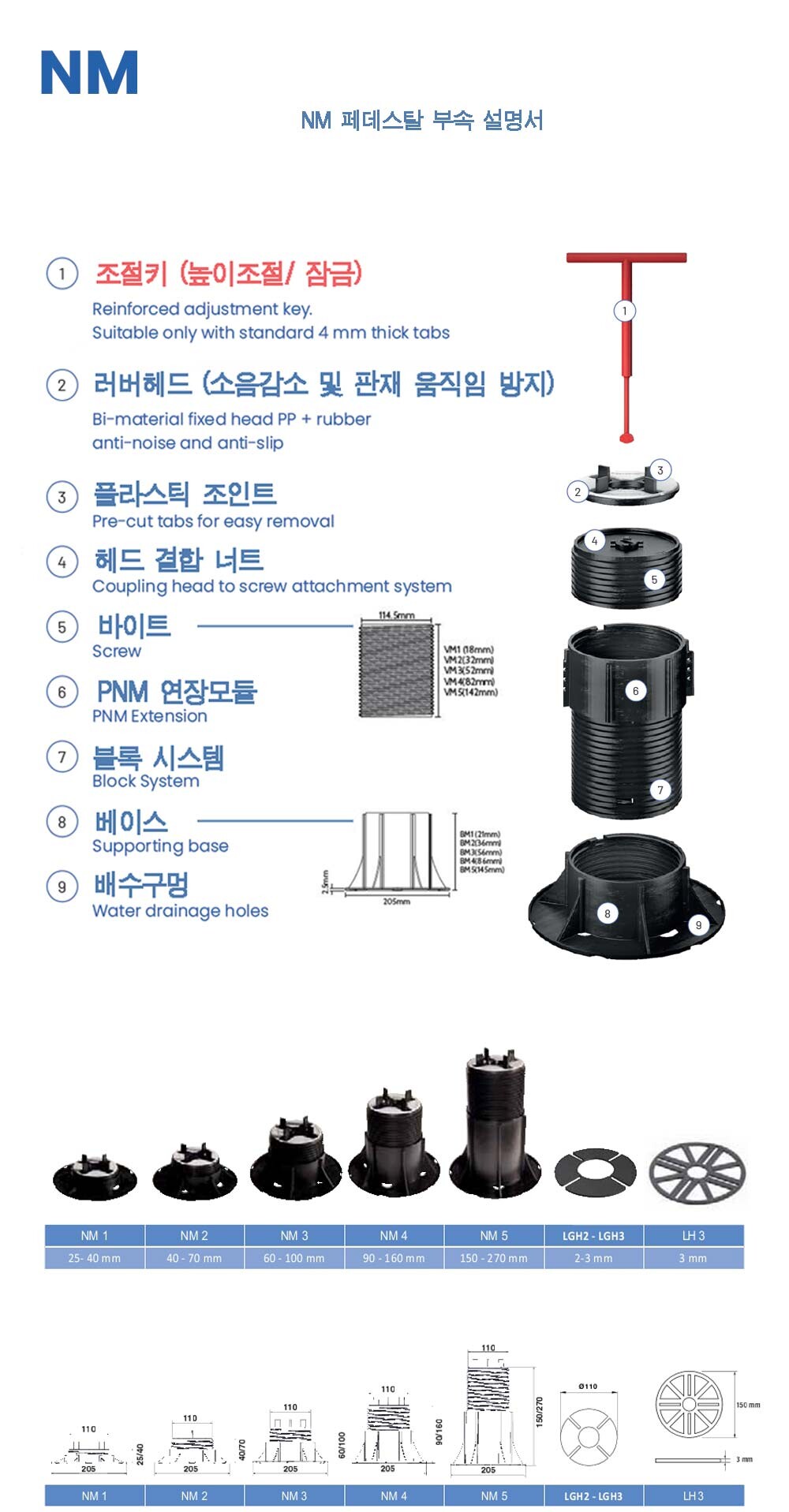 세계 최초의 러버헤드를 적용한 NM SUPPORT는 소음방지(25db감소) 및 손쉬운 설치기능을 가진 최신형 페데스탈입니다.특수 조정키,가변 높이 및 미리 절단된 베이스등을 포함하여 다양한 기능을 자랑합니다.